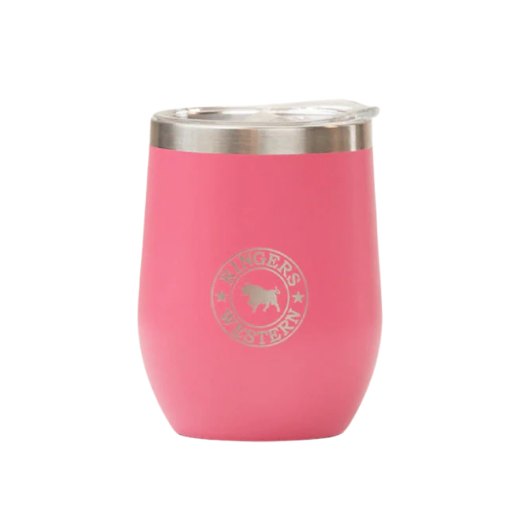 Experience the pleasure of sipping your favorite wine while enjoying the outdoors, picnicking, or unwinding in your backyard. Say goodbye to broken glass with the sturdy and expertly crafted Bindi Wine Cup made of stainless steel. The double-walled vacuum insulation ensures your cold beverages stay cool and hot drinks stay hot until the very last sip. With an acrylic sipping lid, your red wine will be safe from any pesky flies. Plus, the elegant Ringers Western logo is laser-etched on the front, making it a perfect addition to your collection or a thoughtful gift.