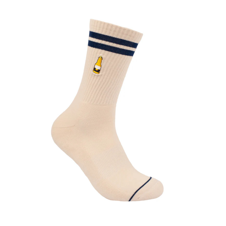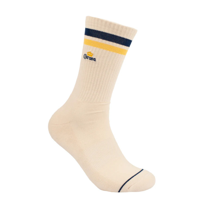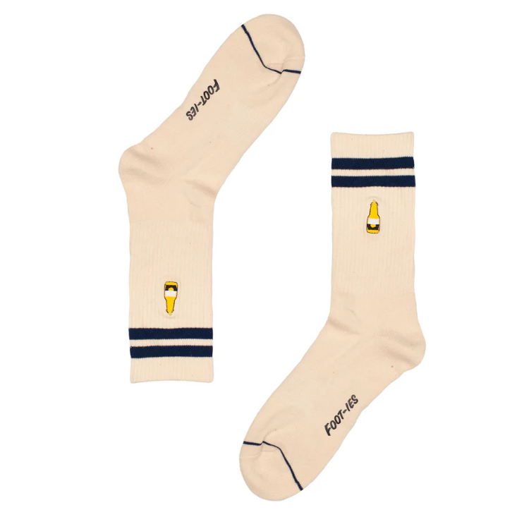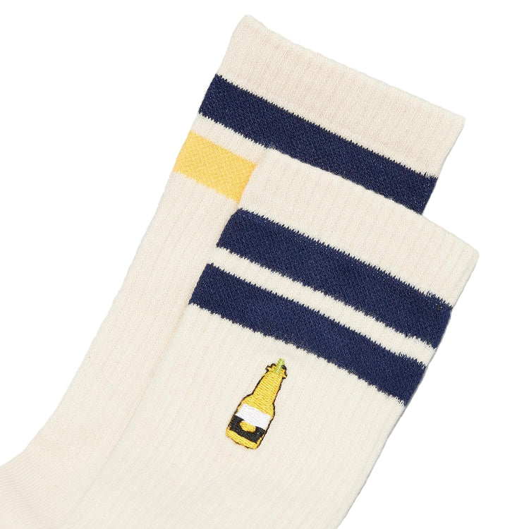 These Footies Corona Retro Sneaker Socks are made from a high-quality mix of 35% lyocell, 35% cotton, 18% polyester, and 12% elastane, ensuring superior comfort and long-lasting wear. Designed in Australia, they fit men's sizes 8 to 13, offering breathability and flexibility for extended use. The cream shade provides a refined, understated look to complement your sneaker lineup. This product features a design inspired by alcoholic beverages and is intended for adults from ages 18+.