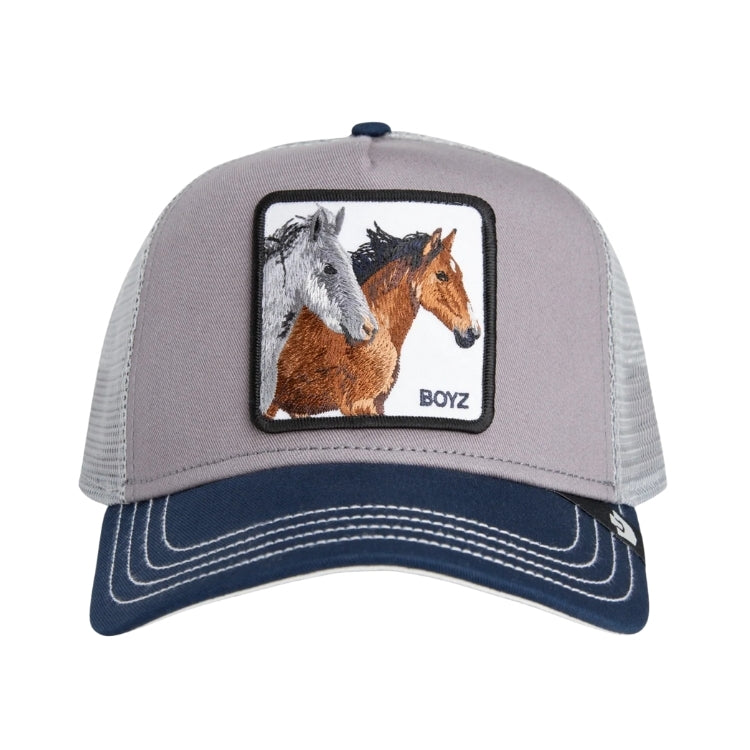 Explore the distinctive charm of the Goorin The Boyz Trucker - Grey. A must-have for hat enthusiasts, this high-quality cap features a classic trucker design, complete with a snapback closure and comfortable cotton sweatband. Adorned with a intricately embroidered animal patch on the front.