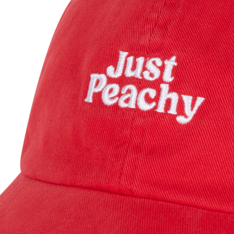The Kooringal Slogan Bay Cap delivers understated style with practical construction. Featuring a "Just Peachy" embroidered logo on a classic 6-panel round crown, this cap combines heritage design with modern comfort. The adjustable sizing ensures a secure fit for various head shapes, while embroidered eyelets provide ventilation during warmer months. A soft cotton sweatband keeps moisture at bay, and taped crown seams reinforce durability where stress naturally occurs. Perfect for everyday wear, this red cap balances casual appeal with quality craftsmanship.