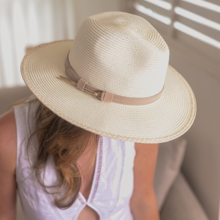 The Sundaise Sylvie Panama in Cream blends classic style and practical design, crafted from 80% paper and 20% polyester for lightweight durability. It features a distinctive mushroom-coloured hatband that adds a subtle contrast, while the internal adjustable sweatband ensures a comfortable, secure fit tailored to your needs. Perfect for refined sun protection with timeless appeal.