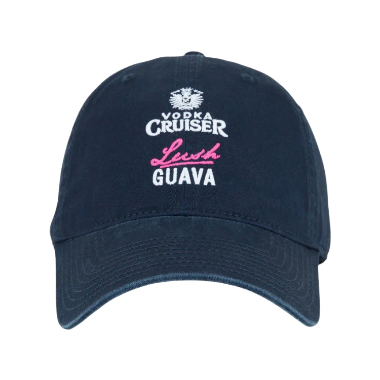 Crafted from 100% cotton, this unstructured 6-panel cap offers breathable comfort and a relaxed fit. Featuring the iconic Vodka Cruiser Lush Guava logo prominently on the front panel, it combines casual style with a nod to your favorite drink. The navy color enhances its versatility, making it an expert choice for everyday wear and outdoor activities.
