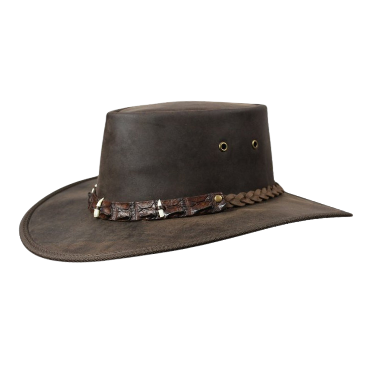 The Barmah 1033MC Outback Crocodile is made with premium full grain cattle leather. This hat has a genuine crocodile leather hatband and 3 genuine crocodile teeth. You will turn heads with this hat because it is so unique! All your mates will love it!