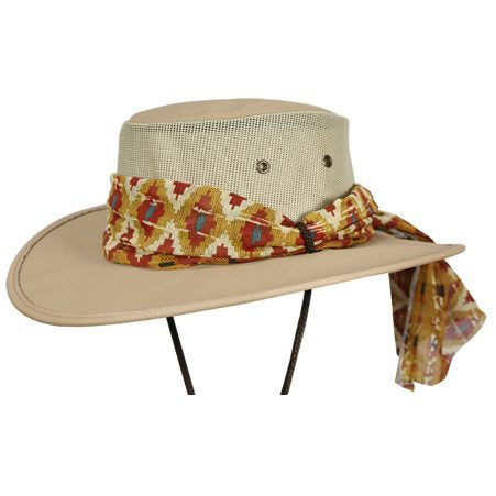 The Barmah 1047 Ladies Canvas Drover Cooler is constructed with durable cotton canvas and features an airflow crown to keep you cool and finished with an beautiful printed scarf to add a touch of femininity to the hat. This is the perfect addition to your wardrobe and you will certainly make it your new go to for special occasions!