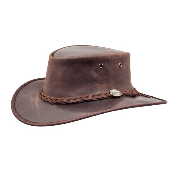 Barmah 1062BR Foldaway Oiled is great in the outback, with a rugged oiled waxed leather finish and a shorter brim for more of a city look. This hat is not for the faint hearted, its unique leather is key to showing a different finish, worn-in, lived-in look making it look loved and used.