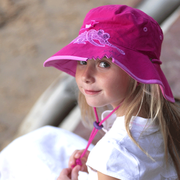 Sun protection and fun combined! The Girl's Wide Brim Croc Hat is made from microfibre. These unique character designed sun hats offers a wide brim for maximum sun protection. We have also included a chin strap with a secure break-a-way toggle for safety. The perfect hat to accompany any little one on their adventure!Features: