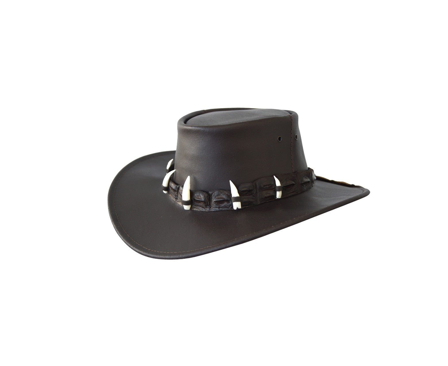 The Jacaru Croc Hunter has been made with Australia in mind. Adorned with 5 croc teeth attached to a crocodile hat band, this hat screams Australia! Made from 100% Bovine Leather which is not only cost effective but durable and hardwearing. Crocodile leather is a natural leather, meaning no two hats will be the same, they all have their own character making yours one of a kind!
