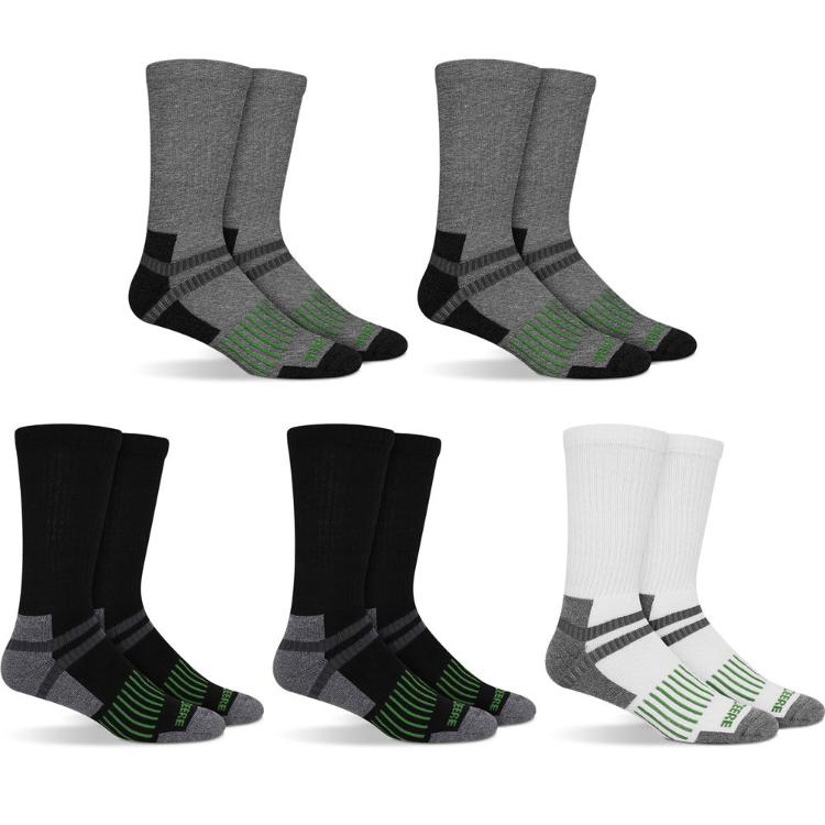 John Deere 5 Pack Crew Work Socks - Black, Grey & White (Assorted)