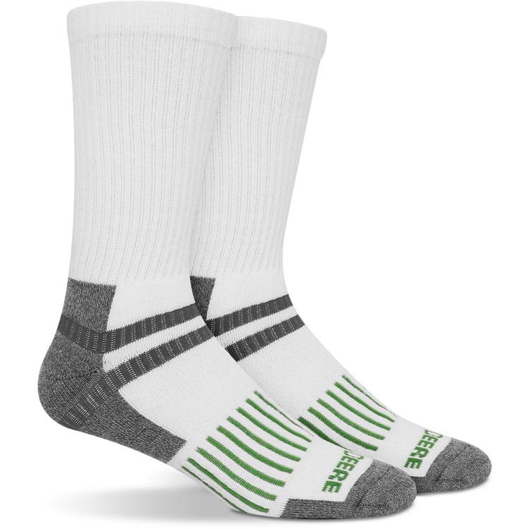 Experience ultimate comfort and durability with John Deere 5 Pack Crew Work Socks. This pack includes 5 pairs of officially licensed JD socks in black, grey, and white, made with 86% poly, 12% nylon, and 2% elastane for moisture-wicking and stretch. Ideal for work or outdoor activities, these socks offer all-day support for your feet.