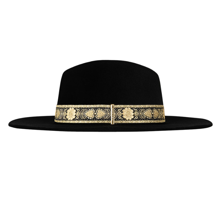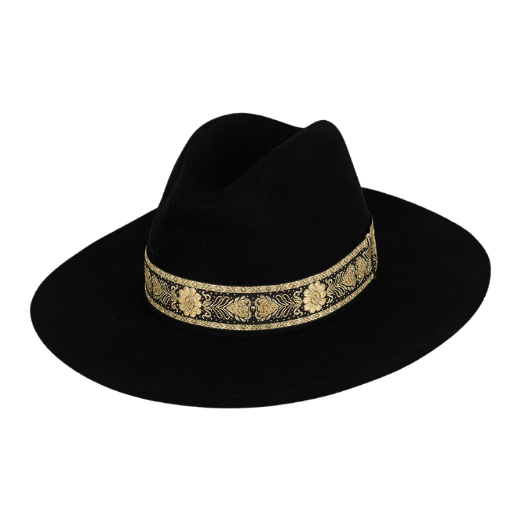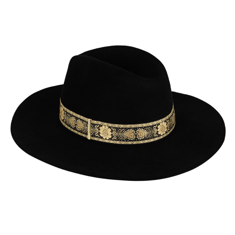 For a touch of sophistication, add the Womens Mid Brim Fedora - Elwood to your wardrobe. Made of premium wool, it boasts a woven crown band and elegant metal trim logo. Embrace timeless elegance with this classic fedora.