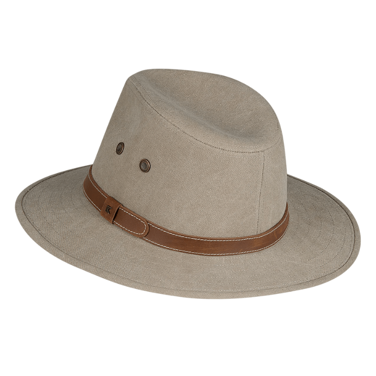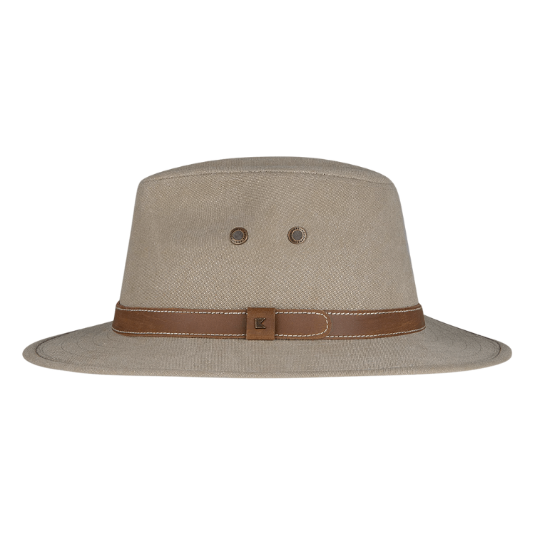 The Kooringal Mens Safari Currumbin in Clay offers a breathable and comfortable option for outdoor adventures. The standout leather crown band adds a touch of style, while the eyelets and lining provide additional ventilation. With a padded cotton sweatband, this snappy safari is ready for any excursion.