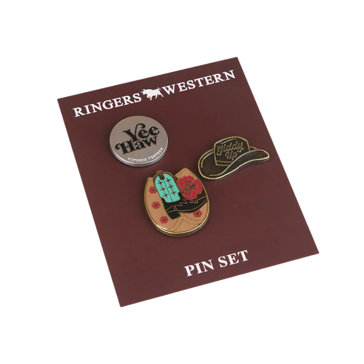 Add a touch of country charm to your hat with the Ringers Western Nandaka Pin Set. Crafted from brushed metal with enamel fill, this trio of pins offers a subtle yet distinctive accent. Perfect for enhancing your hat’s style with authentic, expert-crafted detail.