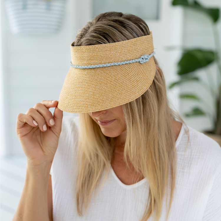 The 'Anika' Visor is your new summer essential. It is a completely packable visor made from flexible braided fabric allowing you to confidently pack it for travel. The braided fabric is extremely lightweight and perfect for walking or a day at the beach.
