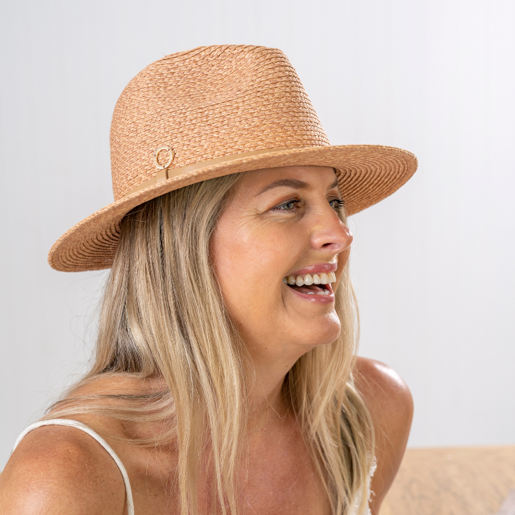 The 'Pearl' Panama hat from Sundaise is a beauty in itself! This hat features a panama-fedora style crown with a gold Sundaise badge on the side of the crown. Perfect for everyday wear, this hat will become your go to summer essential. You are sure to love it!