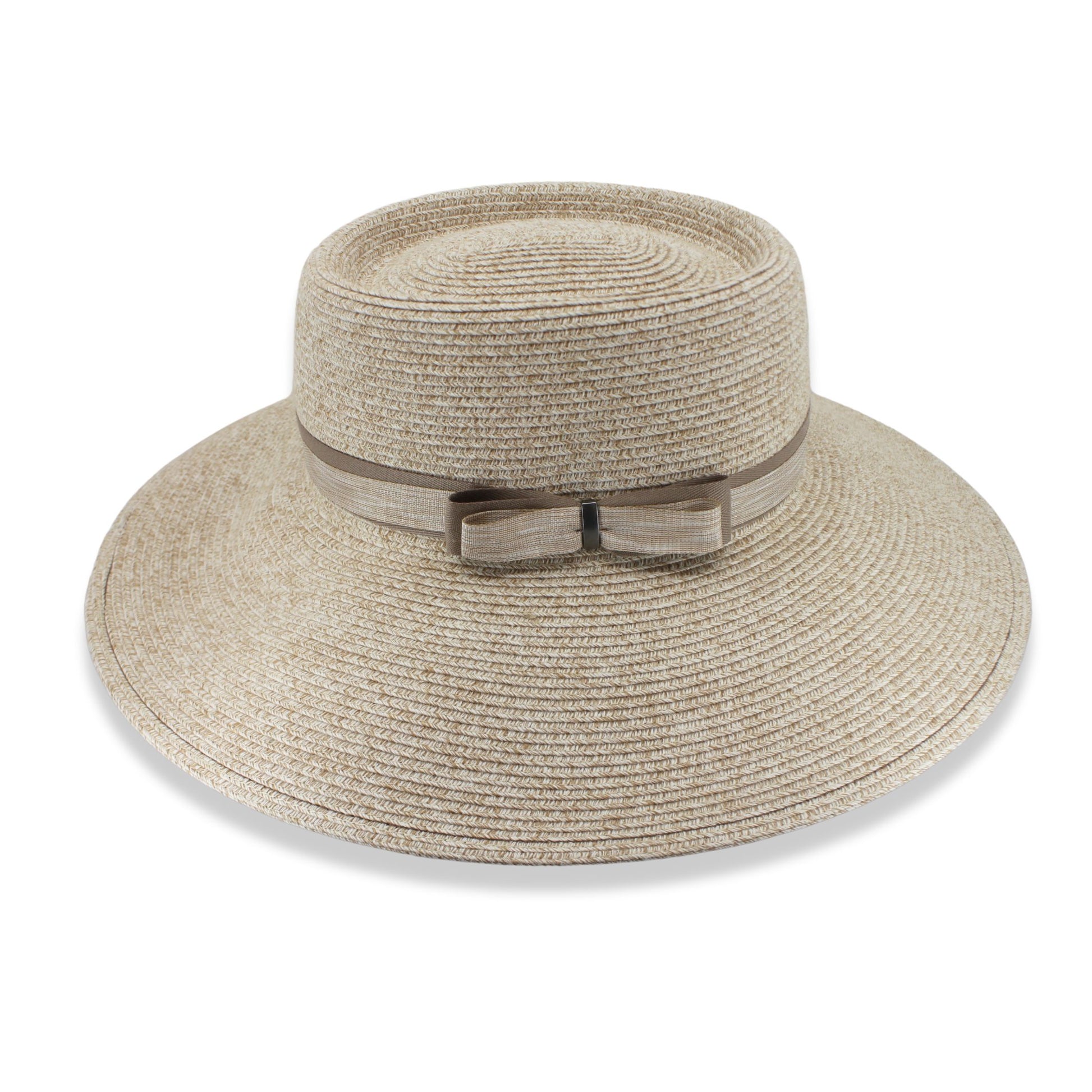 Elegant and versatile, the Tina M Copenhagen Maia Capeline in Natural combines timeless fedora style with modern innovation. Made from crush-resistant UPF50+ Flexibraid®, it offers reliable sun protection with a wide brim and a soft, natural tone. The delicate double ribbon band with a side bow adds refined femininity, while the internal ComfyFit band ensures a secure, comfortable fit throughout the day. Perfect for garden parties or beach outings, this Australian-made hat delivers effortless sophistication and practical comfort for every summer occasion.